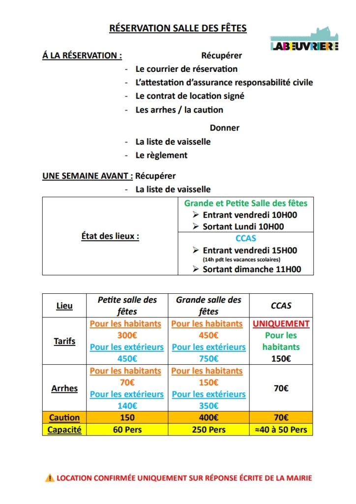 TARIF DES SALLES